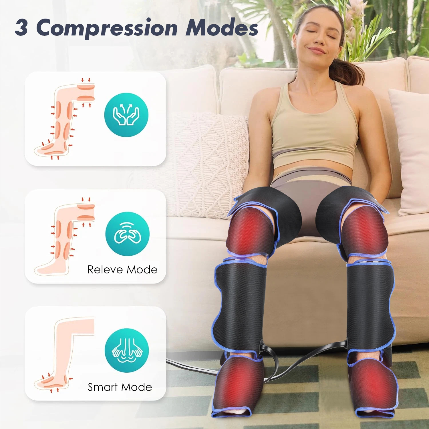 Whether the young work in the office, the elderly stay at home, athletes finish training or workout, or someone are under high work pressure and labor intensity, they will suffer from painful legs, feet, calves or sore muscles. Air Compression Foot and Leg Massager with Heat can efficiently and safely improve blood circulation, relax muscles, relieve fatigue and pain for them. Great Foot and Leg Massager in need, great massage tool indeed.
