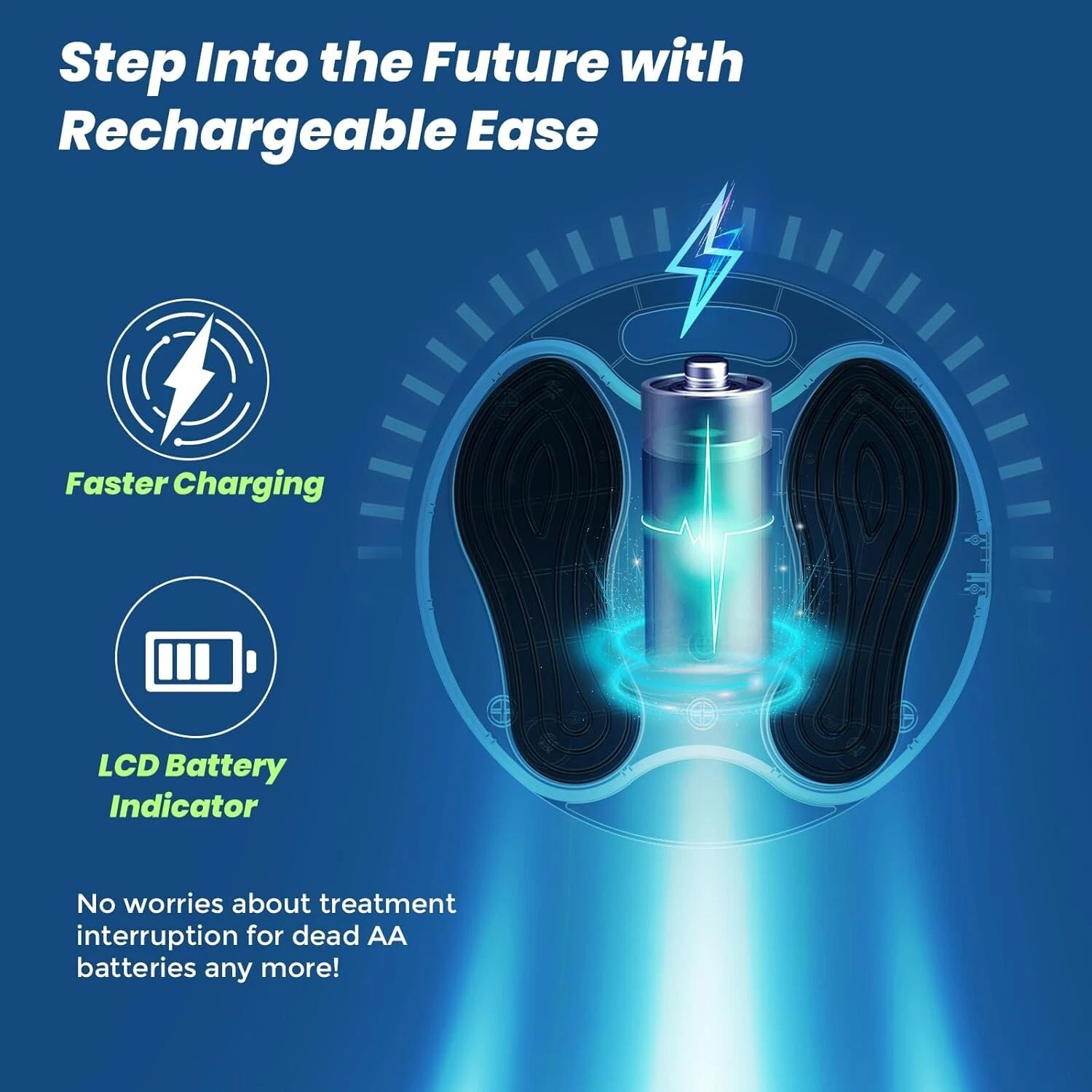 【TENS & EMS Dual Technology】Our foot stimulator combines EMS and TENS. These techniques utilize mild electrical pulses to stimulate muscles, enhance blood circulation, and relieve pain from neuropathy, swollen feet, muscle stiffness, cramps, and numbness. Feel the difference as this device also helps reduce fatigue and improve sleep quality, making it perfect for daily use.