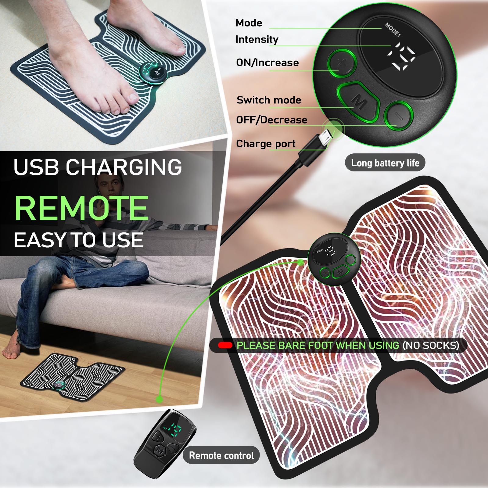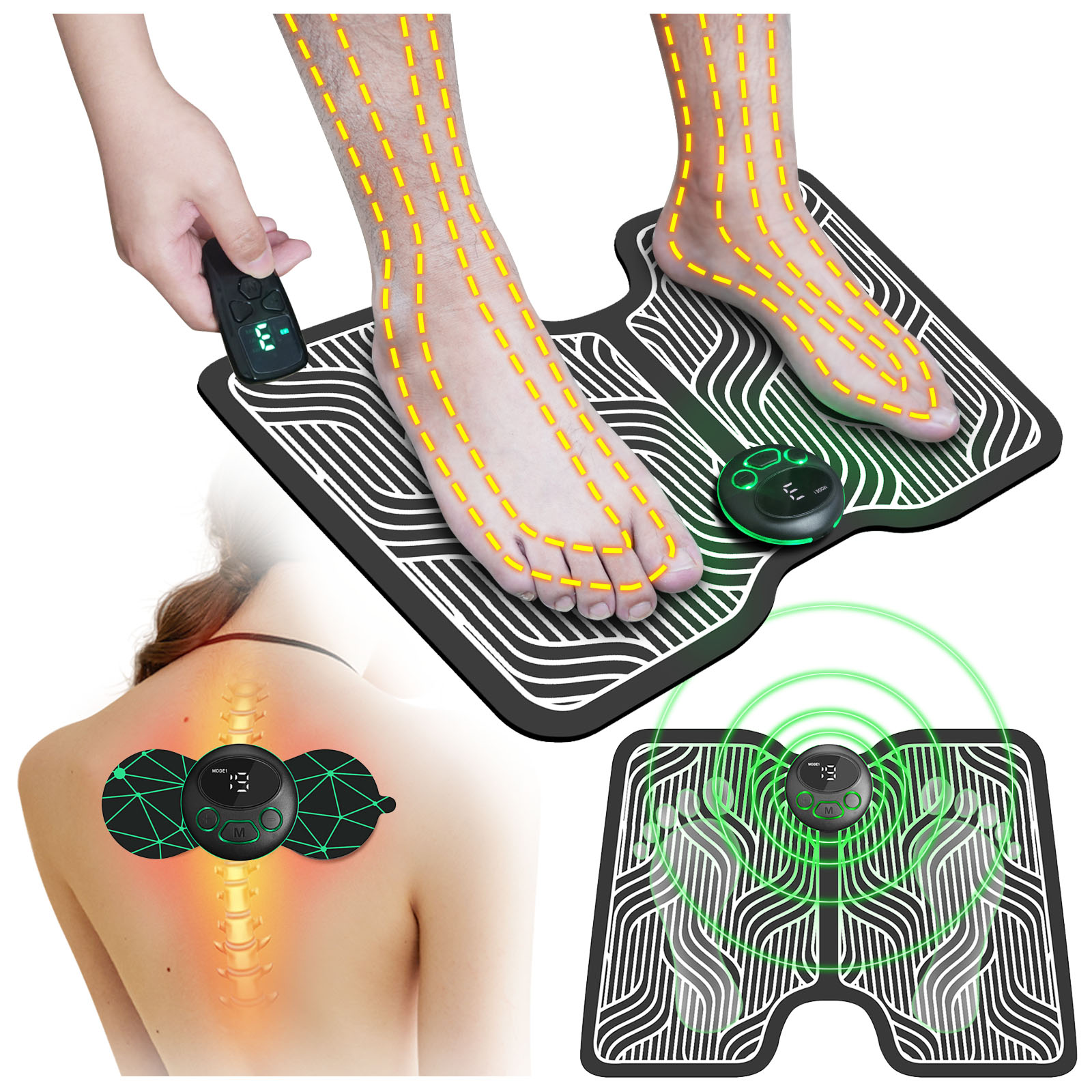 & Free Shipping- Foot Pain Relief:Delivers low-frequency electrical pulses to relax muscles and improve blood circulation in the feet. It uses microcurrent stimulation—not vibration—to target key acupoints. For optimal results, place both bare feet directly on the mat