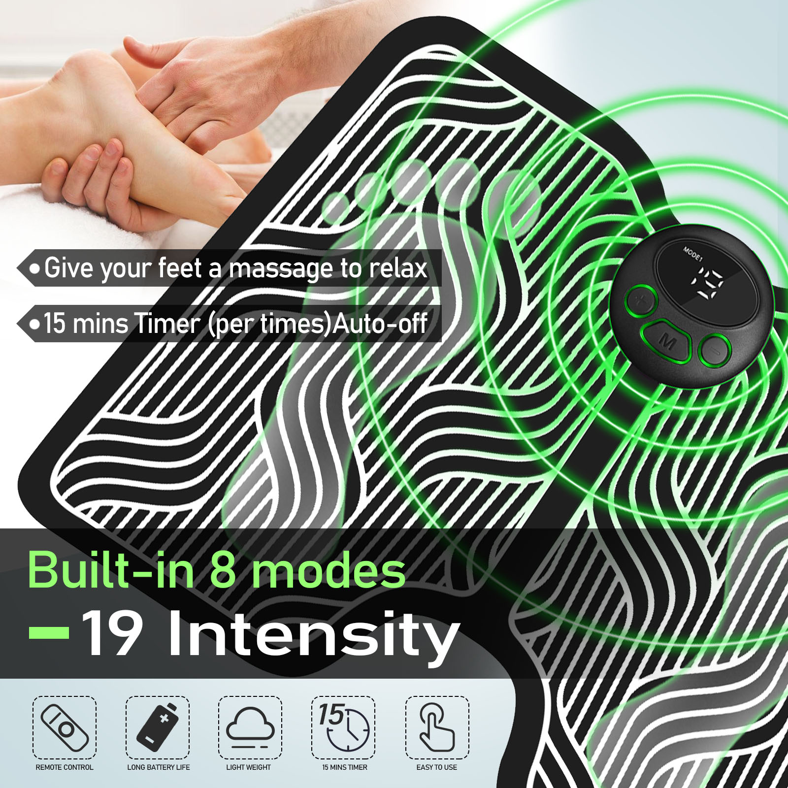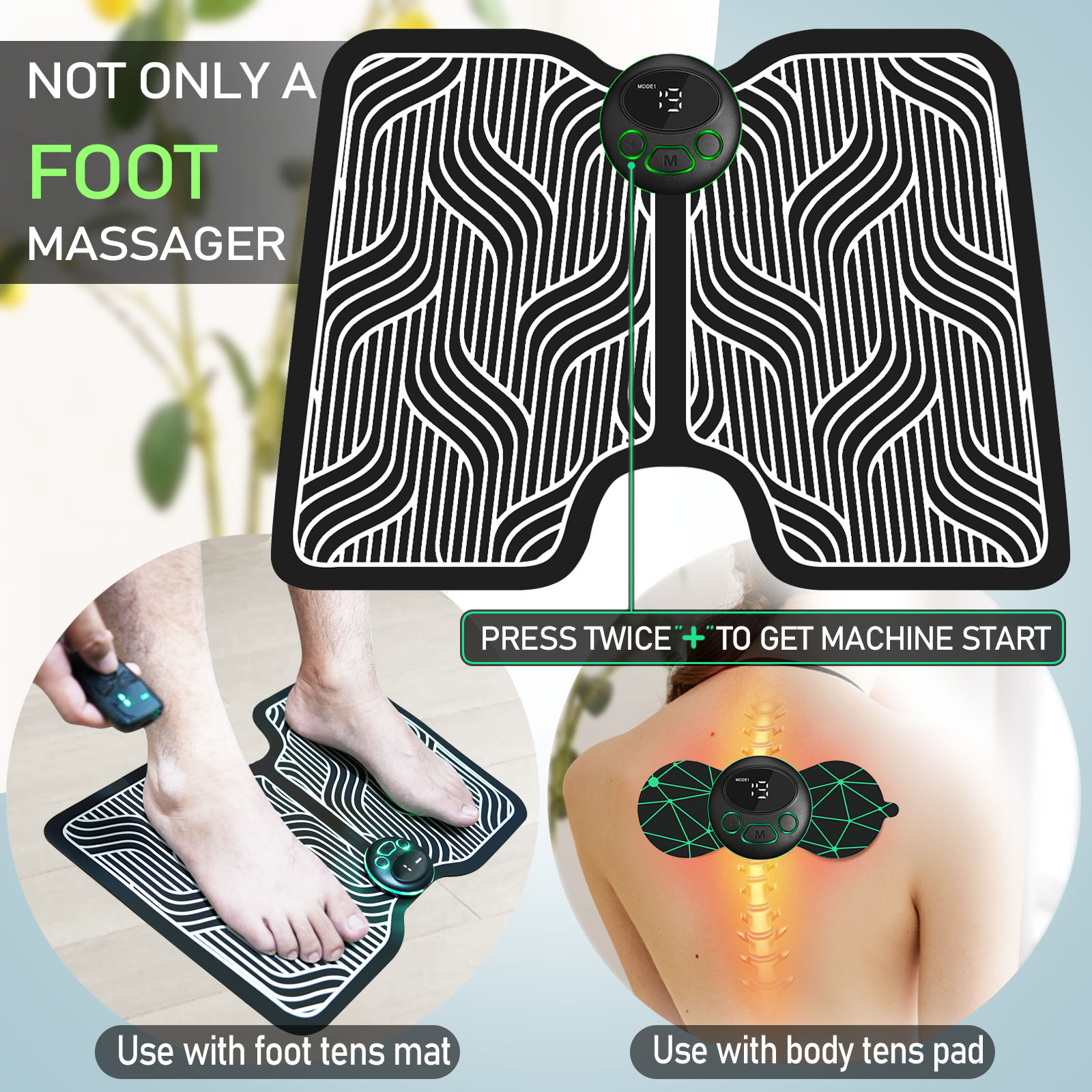 Tens Ems foot massager mat device, 8 model 19 intensity include