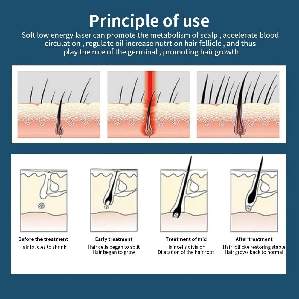 1. Efficient Wavelength, Authoritative Certification to Promote Hair Growth:This laser hair growth cap features an effective 650nm red light wavelength that can penetrate deep into hair follicles, activate them, improve sparse hair and hair loss issues. It has been approved by the US FDA and clinically validated, helping both men and women quickly achieve thick, strong hair.