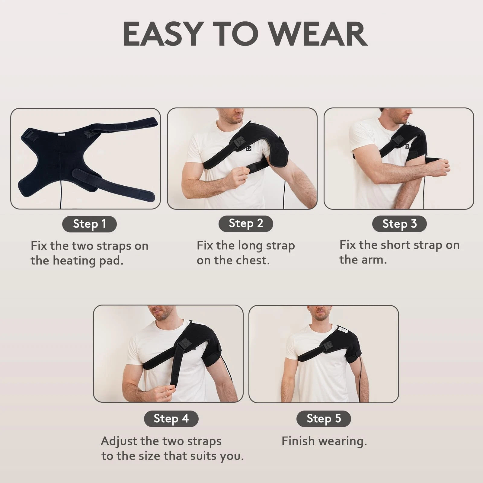【Adjustable Heated Shoulder Wrap Size】- Both for left and right shoulder, lightweight and breathable. Fit for 27” to 52” chest circumference