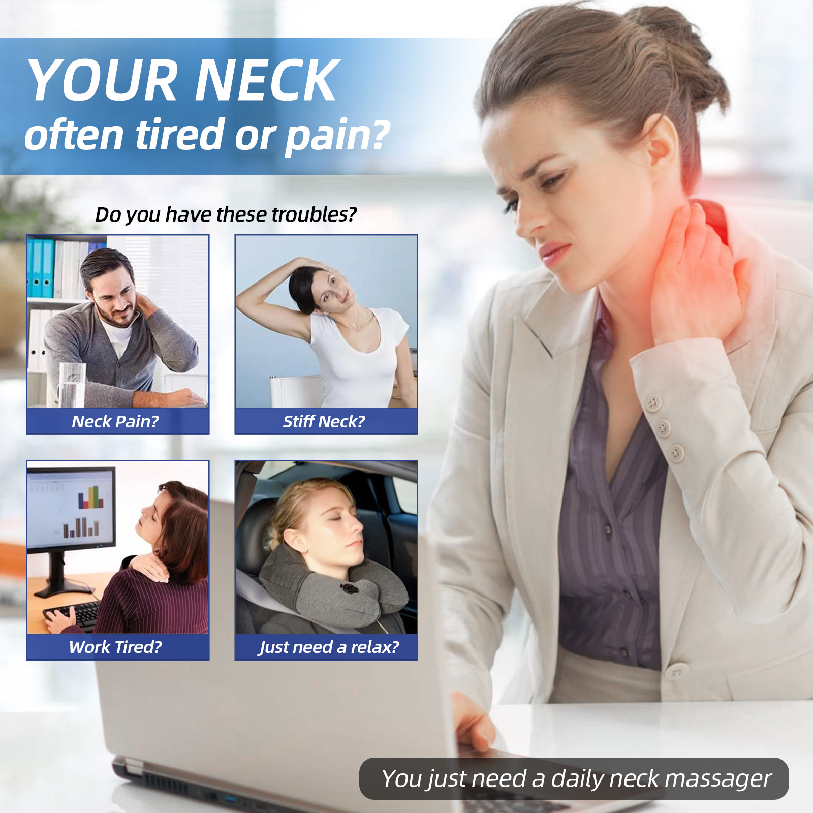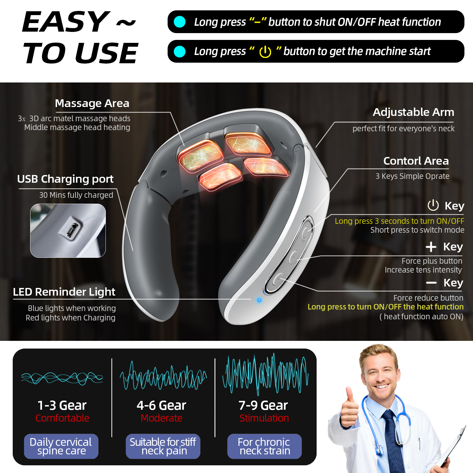 & Free Shipping- Deep Fatigue Relief:Our neck massager through low-frequency pulse massager technology deeply massage and soothe the muscle layer , relax neck muscles and helps to relieve neck soreness and stiffness , shoulder tiredness, improve sleep quality effectively . Please charge the neck Massage fully before the first use