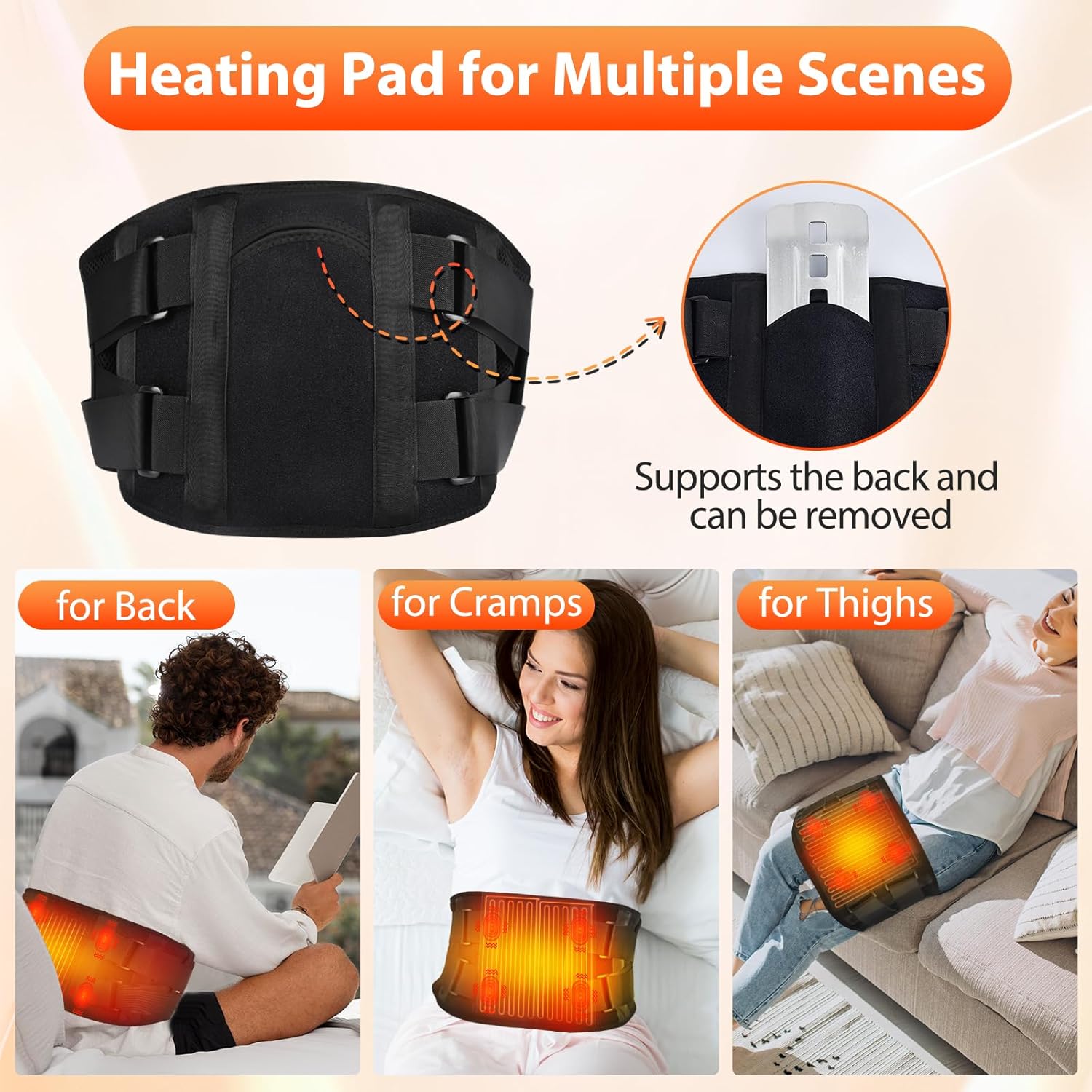 & Free Shipping- Long-lasting, Cord-Free Pain Relief Anywhere: Enjoy 4-8l hours of continuous heat and vibration massage therapy with the high-capacity rechargeable battery (included). No cords, no hassle—use it anywhere, from home to the office, or while on the go for daily relief