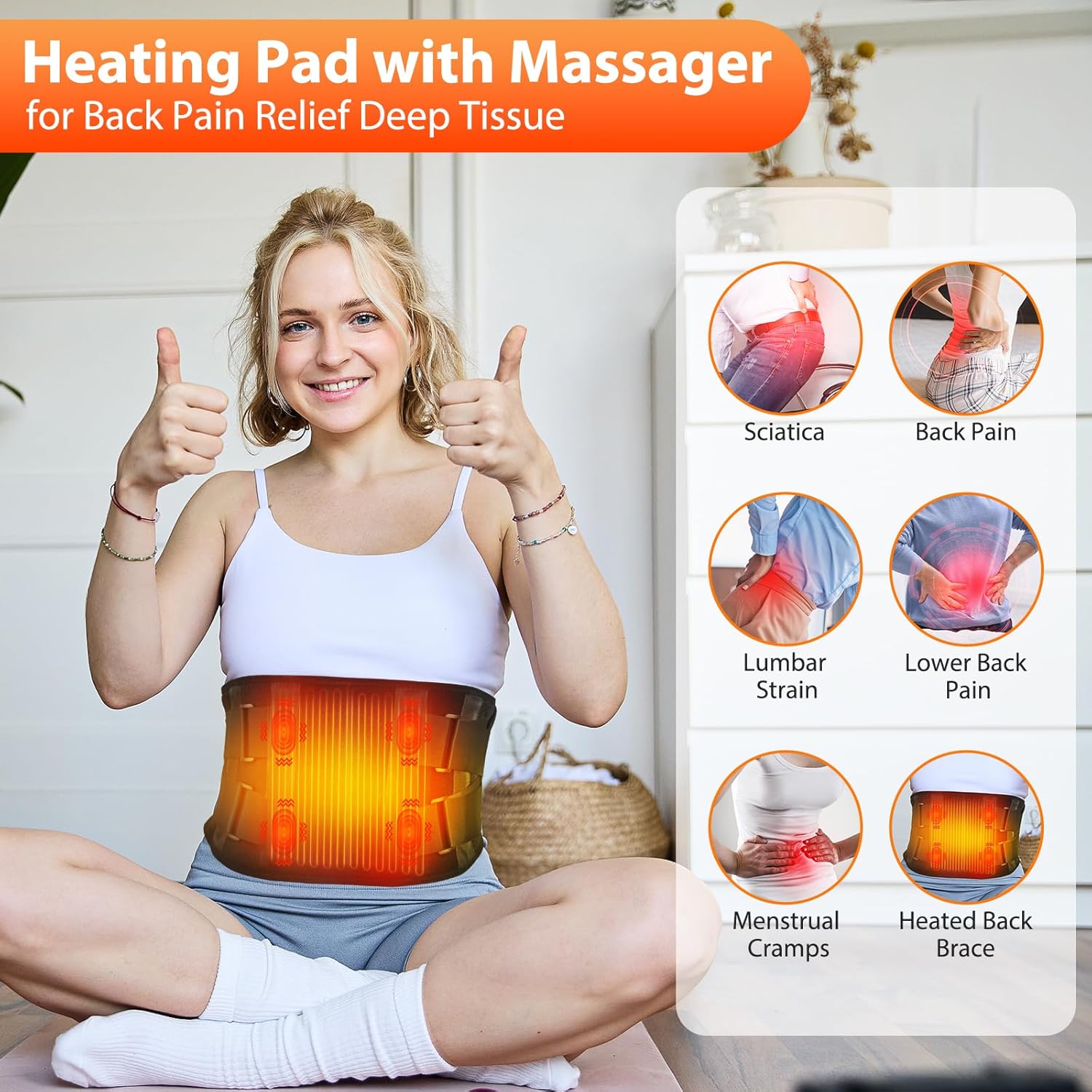 Cordless Heating Pad with Vibration Massage for Back Pain Relief, Long Lasting Battery Portable Lower Back Massager Heated Back Brace Father’s Day Gifts, for Dad Mom