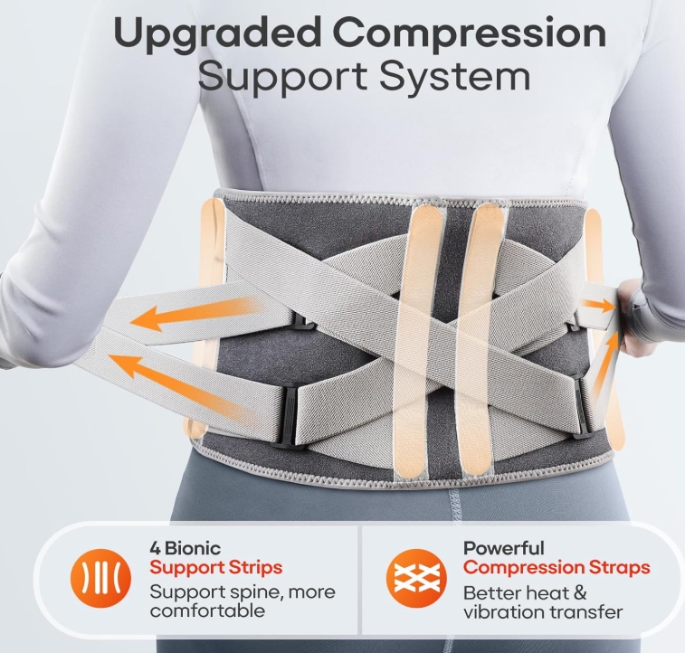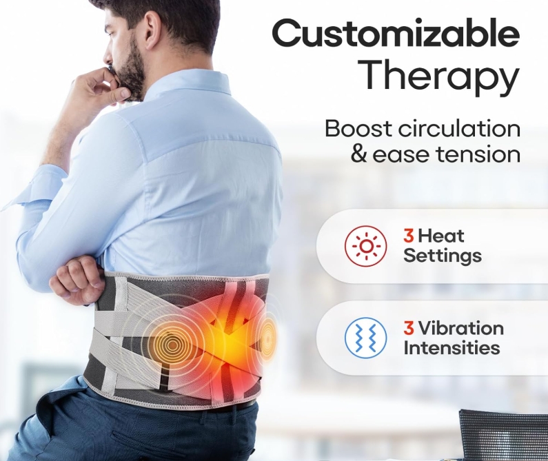 • Long-lasting, Cord-Free Pain Relief Anywhere: Enjoy 3-7l hours of continuous heat and vibration massage therapy with the high-capacity rechargeable battery (included). No cords, no hassle—use it anywhere, from home to the office, or while on the go for daily relief