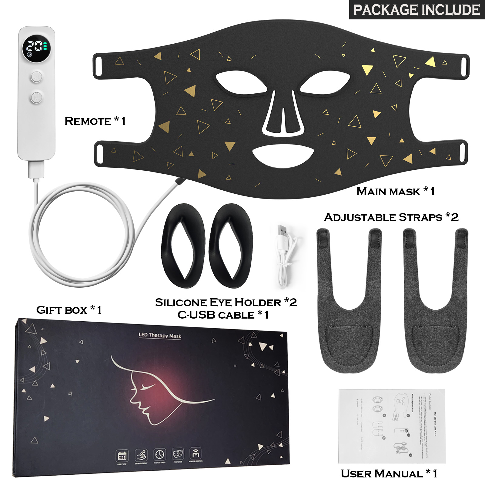 • Lightweight and Comfortable: The adjustable straps holds the led mask firmly in place.Portable size face mak and rechargeable remote control allows you enjoy comfortable,safe,assured and professional skin care experience at home or anywhere anytime