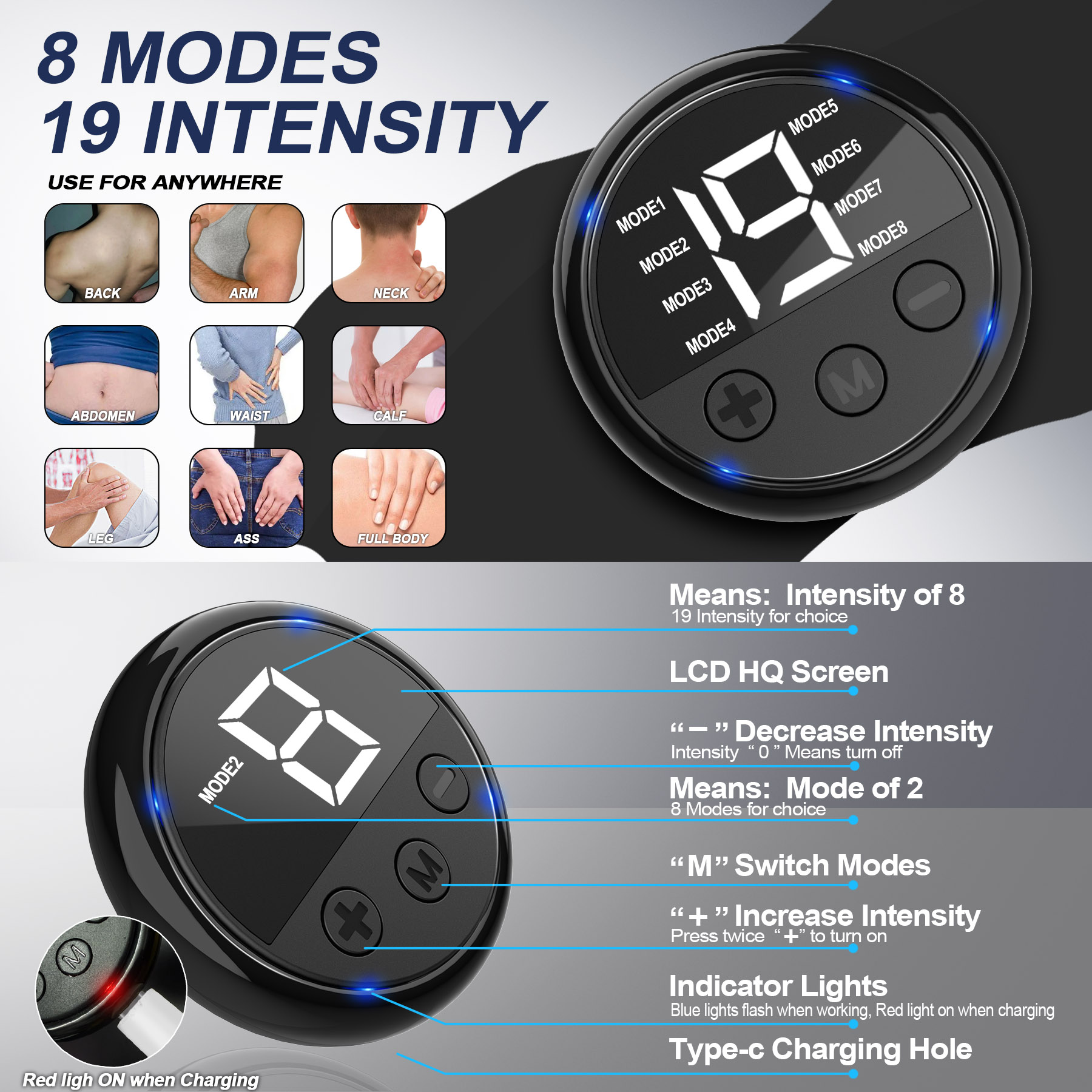 & Free Shipping- Pain Relief : Our electric pulse massager designs with 8 modes and 19 adjustable intensities to meet your different needs. It is recommended to put the tens unit massager on your skin before start and gradually increase from intensity 1 to a comfortable range. Through low-frequency pulse massager technology deeply relax neck muscles. Help to relieve shoulder and neck muscle tension,fatigue